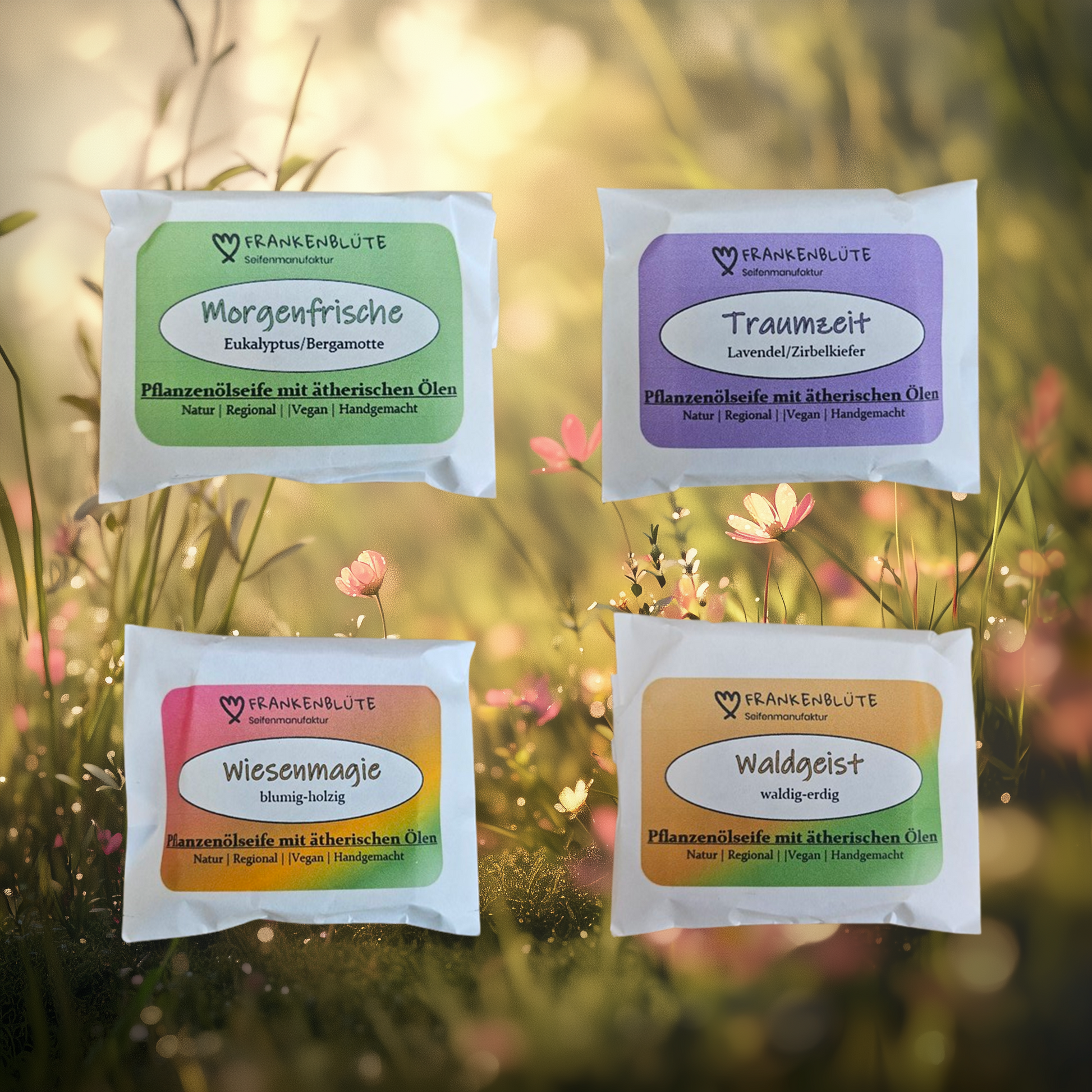 Mit unserem Bundle "4 Seifen Duft-Erlebnis" bekommt du vier fruchtig-frische Duschseifen, die alle ätherische Ölen enthalten, zum Sparpreis (Ersparnis 10%)!
