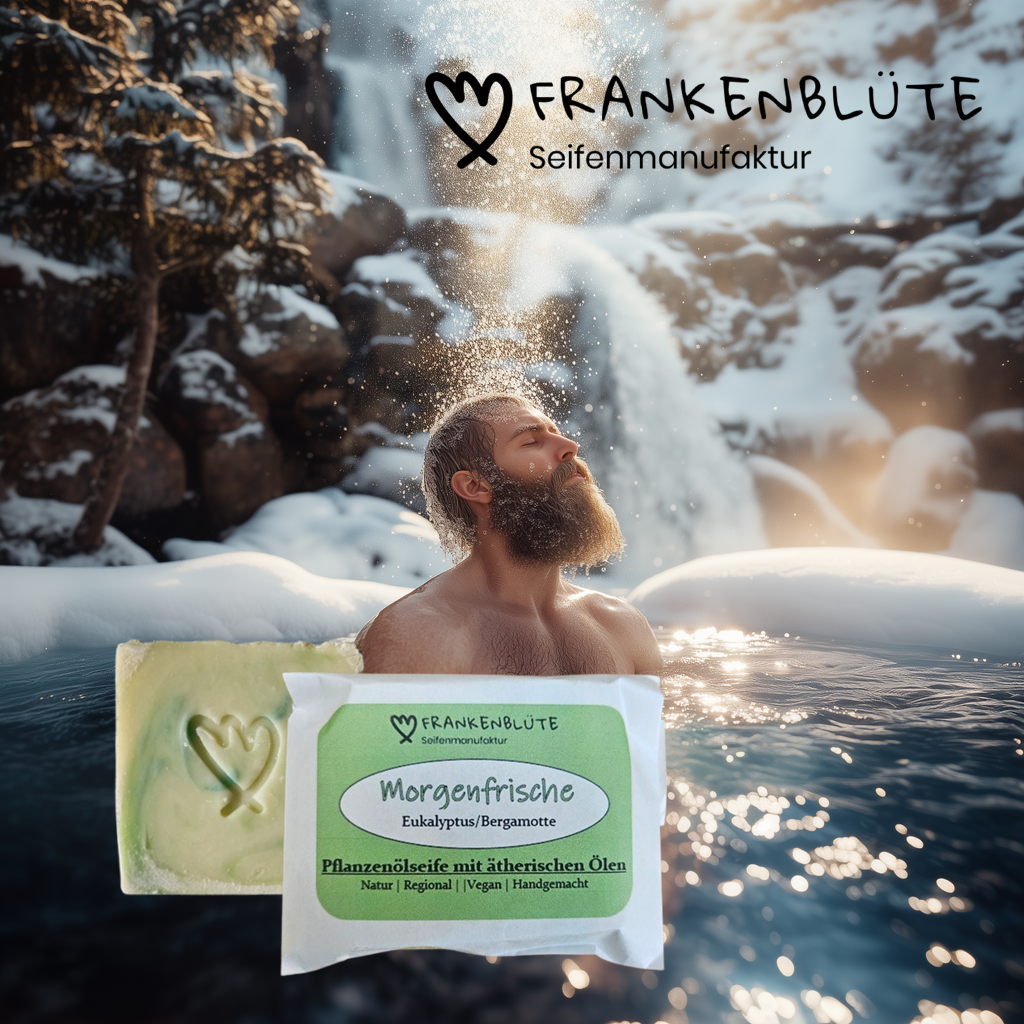Beginne deinen Morgen voller Energie mit der Seife „Morgenfrische“. Ihre belebende Rezeptur reinigt sanft und weckt müde Geister, während ihre leicht erfrischenden Duftnoten Körper und Geist vitalisieren . Die Seife „Morgenfrische“ ist auch ideal geeignet für Anhänger des Kaltduschens oder Eisbadens.