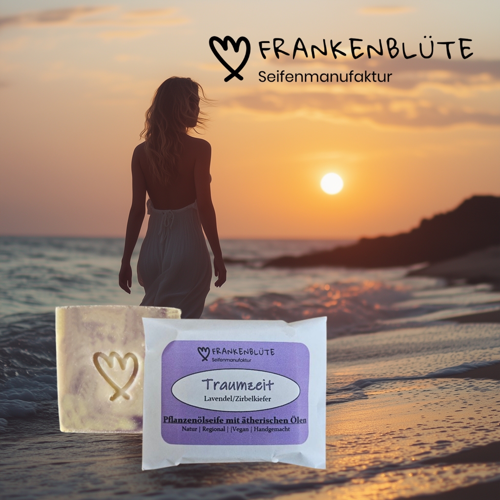 Lass den Alltag hinter dir und entfliehe für einige Momente mit einer entspannenden Dusche. Die in der Seife „Traumzeit“ beruhigenden ätherischen Öle von Lavendel aus der Provence und Zirbelkiefer aus den Alpen umhüllen dich wie eine sanfte Brise und entführen dich an stille Orte der Ruhe. Diese harmonische Kombination verwöhnt deine Haut, sorgt für tiefgehende Entspannung und lässt dich den Stress des Tages vergessen.